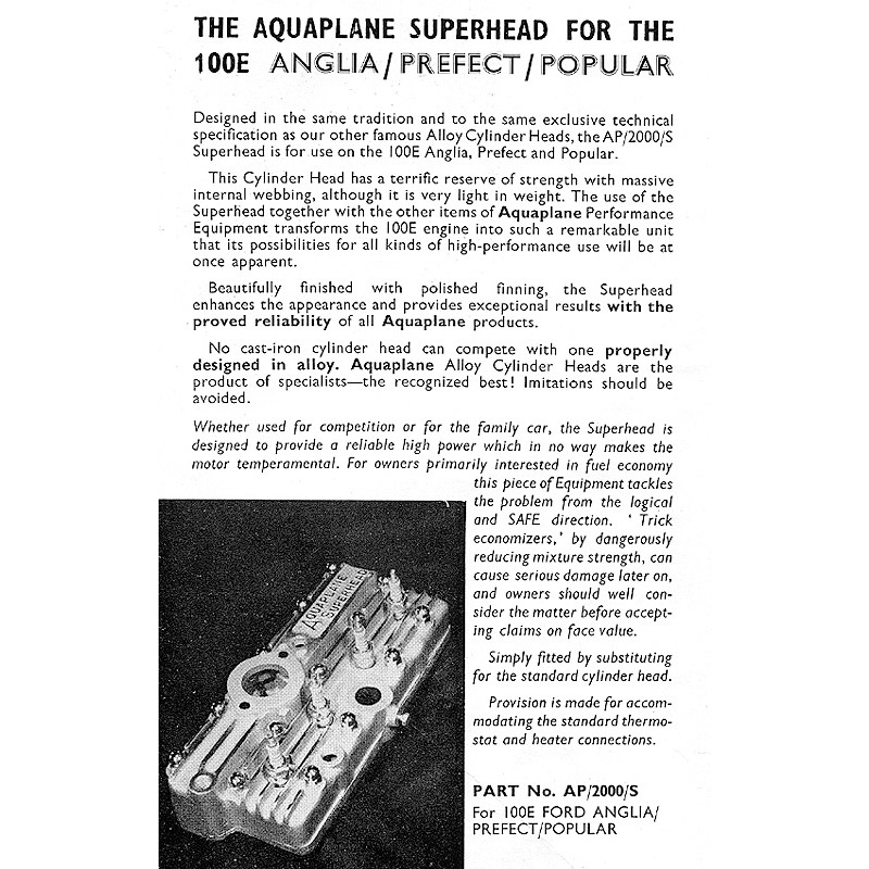 Aquaplane alloy cylinder superhead for 100E engine, weight approx 3.5kg. Compression ratio is approx 8 to 1. Please note that the main face of these heads feature a milled finish but will require final skimming by the customer to their specification. Skimming can be arranged at an additional charge - please select the skimmed option if required.